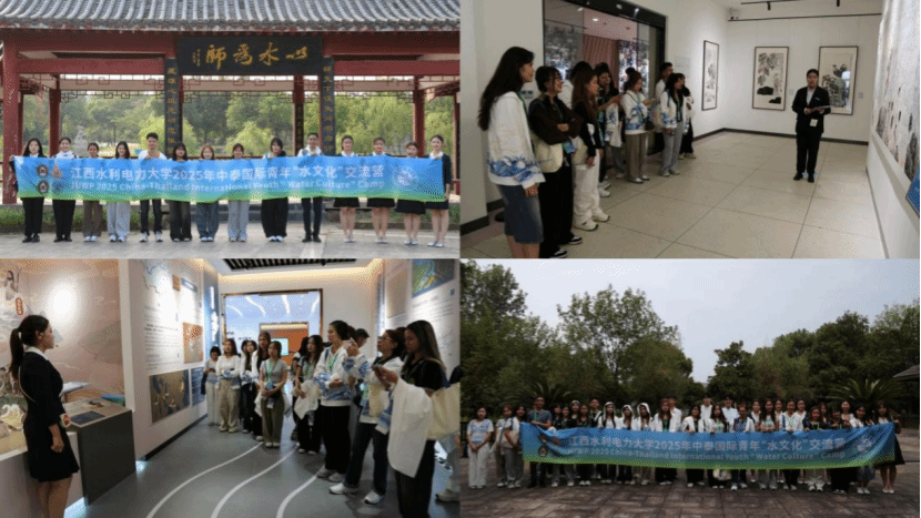 交流营师生们通过“实地探访+讲解采访”的形式,走进全国首家校园水利风景区——瑶湾水利风景区,了解学校“以水为师、以文化人、以科研兴校”的办学理念,感悟水利文化的独特魅力,在蔡超美术馆、水文化馆与生态科技园感受艺术与科技、传统与现代的交织之美。水文化运动会以“以水为媒,运动为桥,共叙中泰情谊”为主题,两国学生合作完成“南水北调”“逆水行舟”“滴水不漏”等挑战。水利工程学院教师以“鄱阳湖水生态研究”为主题进行讲座,结合科研成果讲解生态保护理念,在水质实验室与水利科普馆通过丰富的实证案例与学员们互动交流;人文与艺术学院“水韵中华·水拓画创作”让中泰学子感受水与色彩交织的东方艺术之美,中国学子“艺术采风美育成果展”推动中泰师生围绕写生创作、技法创新与艺术教育展开热烈交流。